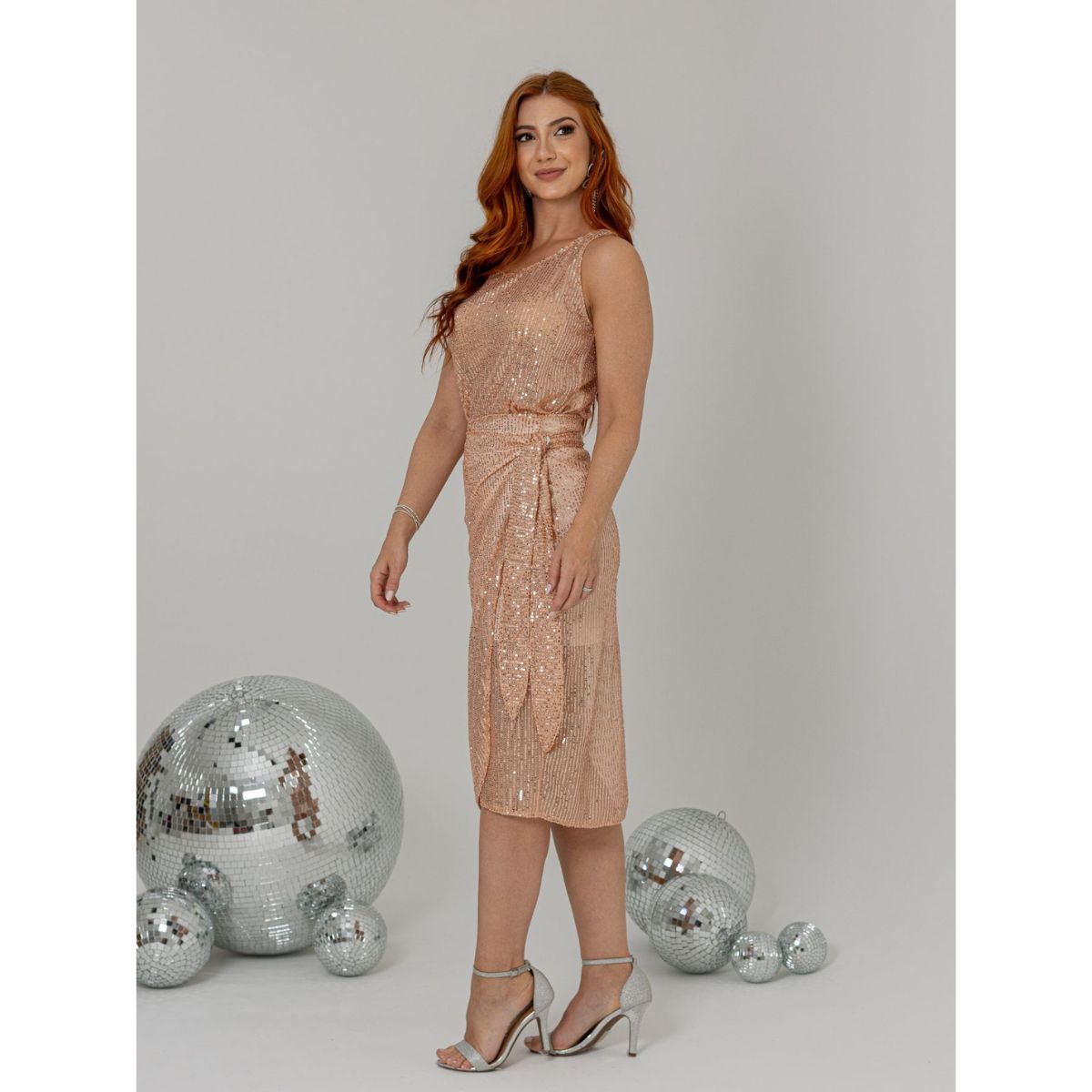 Os paetês são costurados cuidadosamente, mas para maior conforto, recomenda-se o uso com peças íntimas adequadas.
