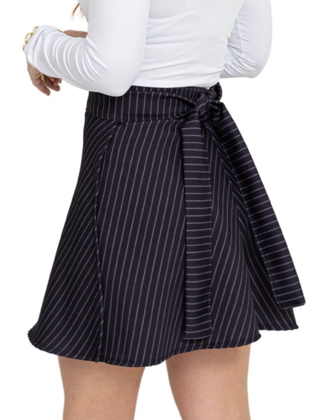 A Saia Curta Transpassada Envelope Alfaiataria Risca de Giz COSMOPOLITAN é uma escolha essencial para quem busca uma peça prática, elegante e cheia de charme para o dia a dia.